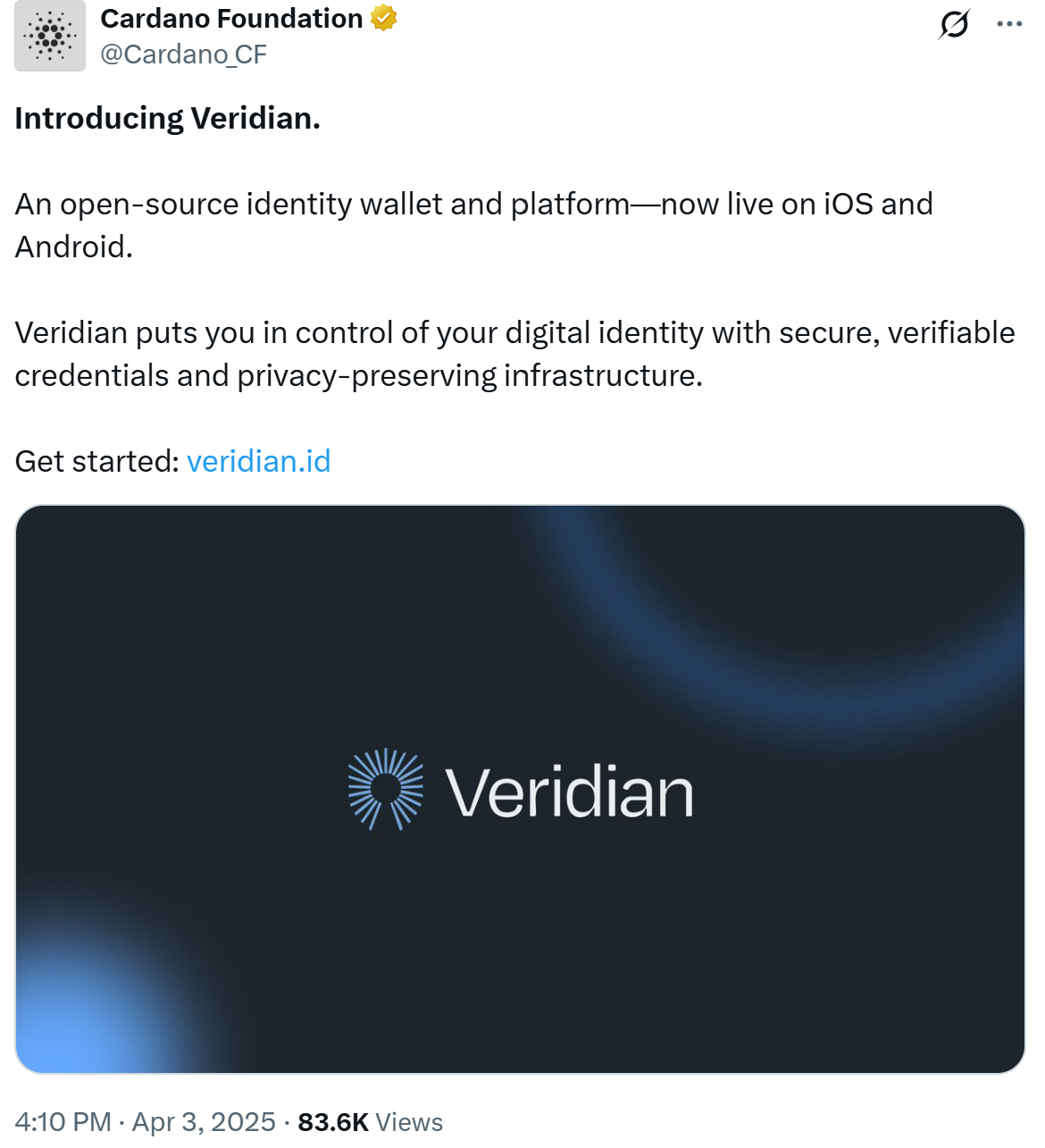 Cardano (ADA) continua a evoluir, posicionando-se entre as altcoins para observar com recentes avanços no ecossistema. O lançamento do Veridian, uma plataforma de identidade digital descentralizada, aproveita blockchain e criptografia pós-quântica para melhorar a privacidade e o controle do usuário – atrações principais em uma era de preocupações com segurança de dados.