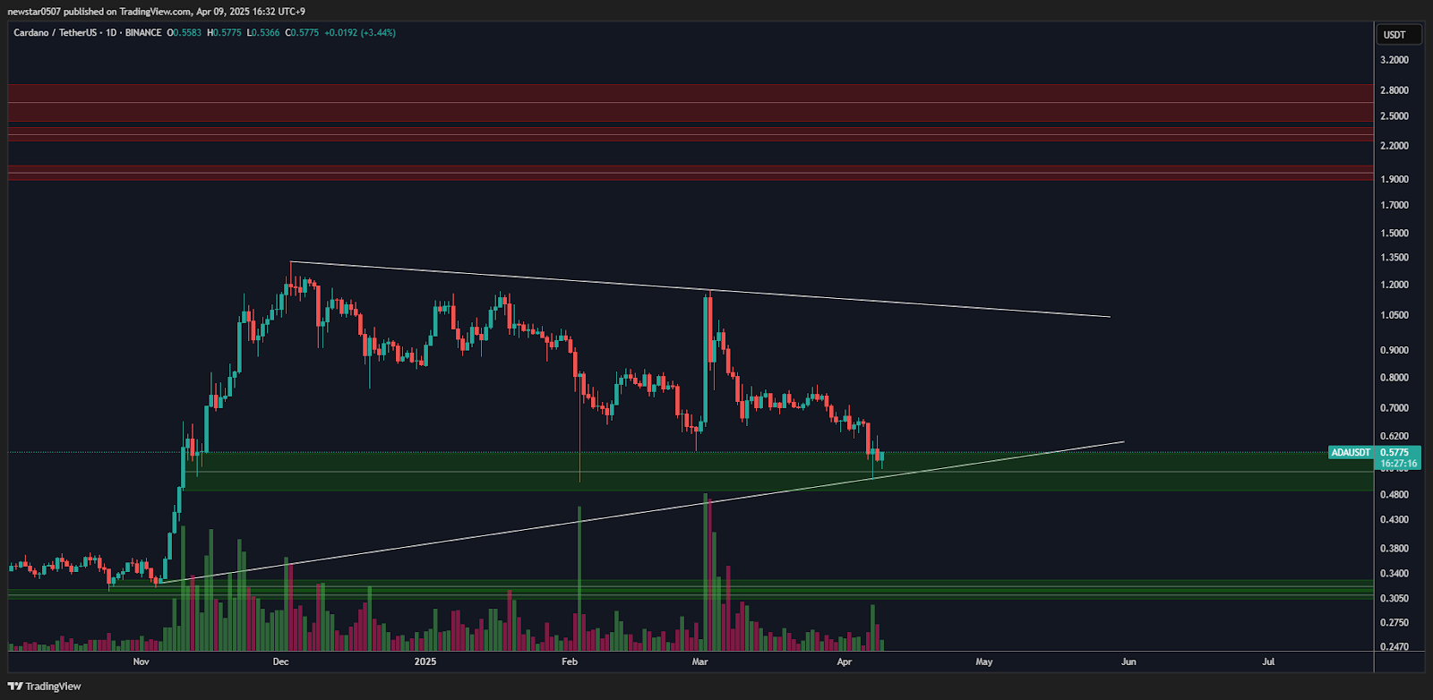 Cardano (ADA), a $0,5583, caiu 6,84% nas últimas 24 horas, com uma capitalização de mercado de $19,69 bilhões. Apesar de uma queda mensal de 25,27%, ADA mostra resiliência. Um analista de criptomoedas @CW8900 observou que ADA ricocheteou de uma zona de muro de compra chave, defendendo seu preço melhor do que a maioria dos projetos, enquanto outro analista destacou suas mínimas mais altas em meio a notícias de tarifas.