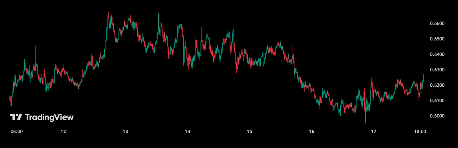 Com o valor total bloqueado (TVL) da Cardano agora em $330 milhões, um aumento de Bitcoin poderia melhorar significativamente este valor, possivelmente desencadeando uma bull run para ADA. No momento da escrita, o preço da Cardano está em $0,6238 com uma capitalização de mercado de quase $22,01 bilhões.