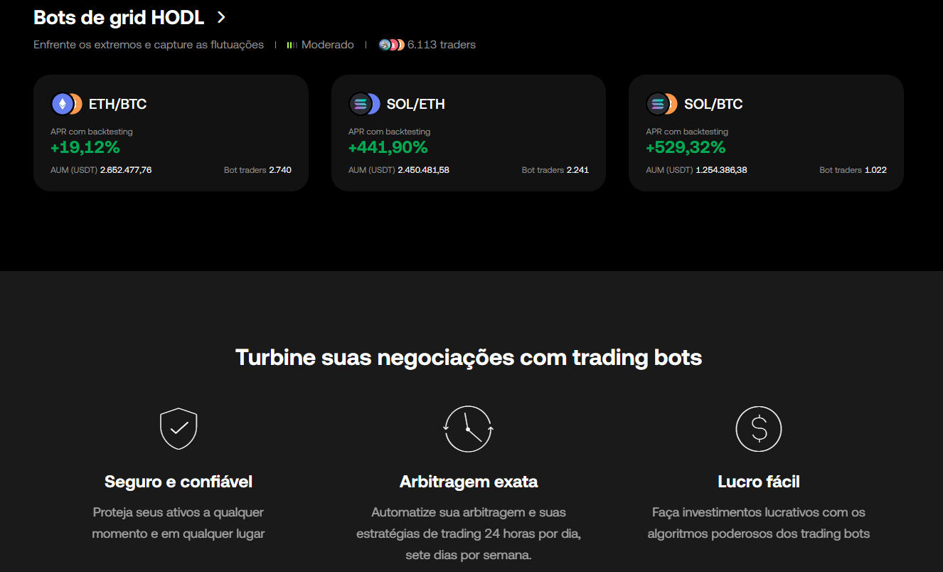 | Ideal para | Traders Web3 e IA | Grandes volumes | Automatização com IA | Iniciantes |