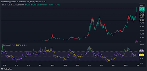 14 de novembro de 2024 foi um dia particularmente movimentado para o Bitcoin (BTC) e altcoins, que também registraram crescimento. O Ethereum, a segunda maior criptomoeda, passou por alguma volatilidade do mercado, mas permaneceu em território positivo, cotado a $3.200. Solana e XRP também mantiveram os ganhos, com a capitalização de mercado da Solana cruzando brevemente a marca de $100 bilhões.