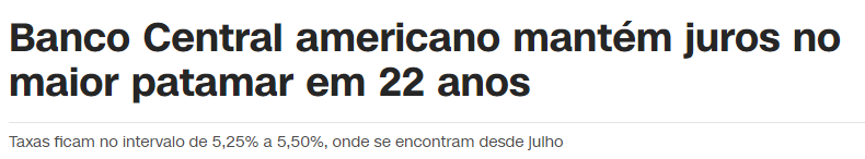 Banco Central americano mantém juros no maior patamar em 22 anos
