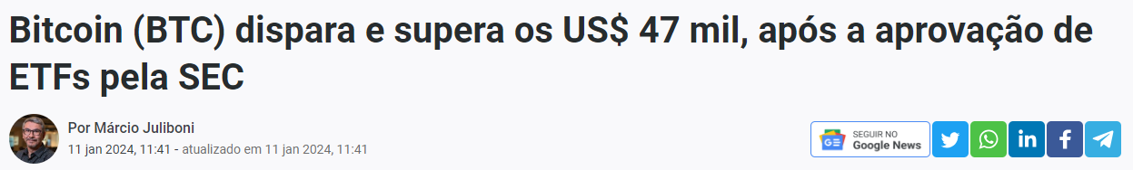 - Aprovação dos ETFs de Bitcoin na Bolsa americana;