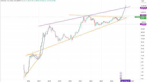 Analistas esperam que, ao ultrapassar esse nível, o Ethereum possa continuar sua trajetória de alta em 2025, potencialmente alcançando 10.000 USDT.
