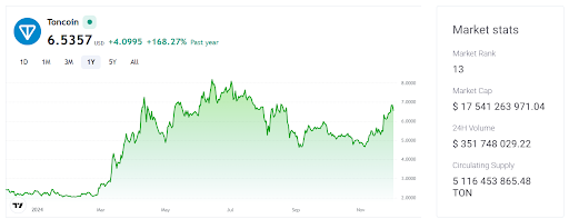 Toncoin Ganha 39% em Um Mês, Foca no Nível de Resistência de $7