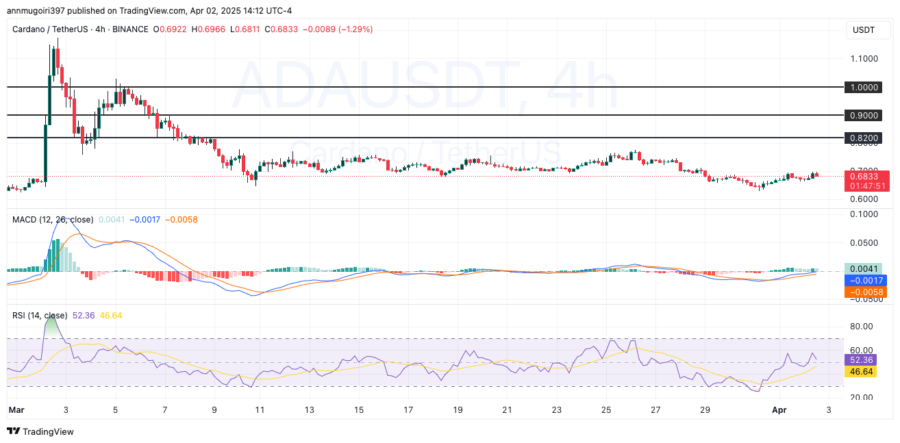 Esses níveis foram previamente mantidos como barreiras para movimento ascendente. Se o ADA conseguir romper esses níveis, poderia potencialmente atingir a faixa de 1,0 USDT. Se o ADA falhar em se manter acima de 0,6 USDT, o próximo suporte está por volta da marca de 0,55 USDT.