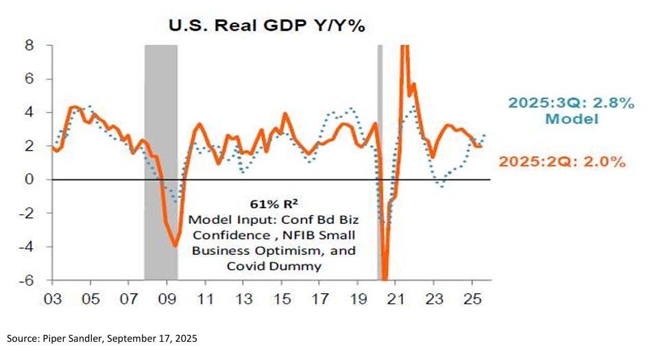 Estimativas da Piper Sandler, apontam que a combinação de automação, robótica e maior participação da força de trabalho pode elevar o PIB potencial de 2,3% para próximo de 3% até 2026, criando um cenário “Goldilocks” termo que descreve um cenário econômico ideal, nem muito quente, nem muito frio, um cenário de crescimento sustentado, mas sem superaquecimento.