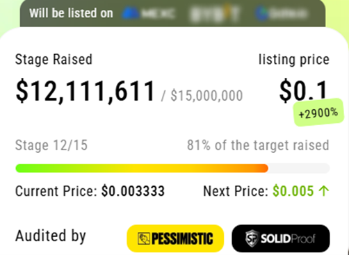 No próximo 13º estágio da pré-venda, o valor do token $XYZ subirá ainda mais para $0,005, significando que investidores iniciais têm a chance de garantir um desconto maior.