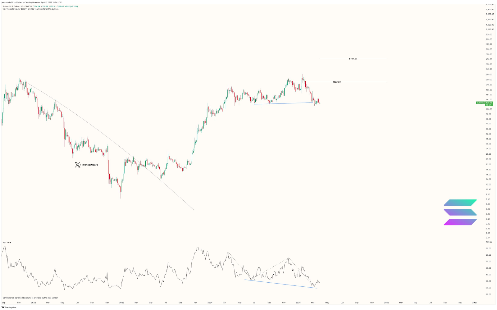 Um analista de criptomoedas recentemente destacou uma possível tendência de alta para o preço da Solana, apesar das condições baixistas contínuas do mercado. De acordo com o analista, o preço do SOL está atualmente mostrando sinais de uma divergência de alta oculta, um indicador técnico sugerindo o potencial para um movimento ascendente significativo. Se o preço ultrapassar a meta de 233,8 USDT, poderá ver um impressionante aumento de 80%.