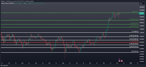 Compradores institucionais também contribuíram significativamente para o rali do Bitcoin, com fundos de pensão globais e corporações ampliando suas reservas. O Standard Chartered relata que as aquisições institucionais alcançaram 683.000 BTC neste ano, com quase 245.000 BTC adquiridos desde a eleição presidencial dos EUA. Esses desenvolvimentos alimentam o otimismo para uma atividade de mercado sustentada em 2024 e além.