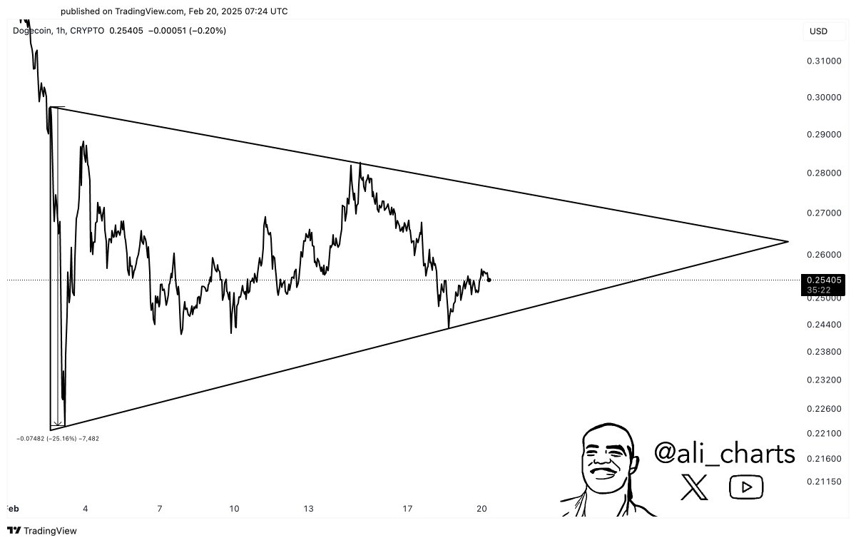 Apesar da fraca atividade de compra, a especulação em torno de um potencial ETF DOGE continua. Se aprovado, poderia mudar o sentimento do mercado e atrair interesse institucional. No entanto, com menos novos compradores acumulando DOGE e as condições de mercado permanecendo voláteis, o futuro próximo da meme coin é incerto. No momento da escrita, DOGE é negociado a aproximadamente 0,25 USDT, com detentores monitorando de perto se ele pode recuperar força ou enfrentar correções adicionais nas próximas semanas.