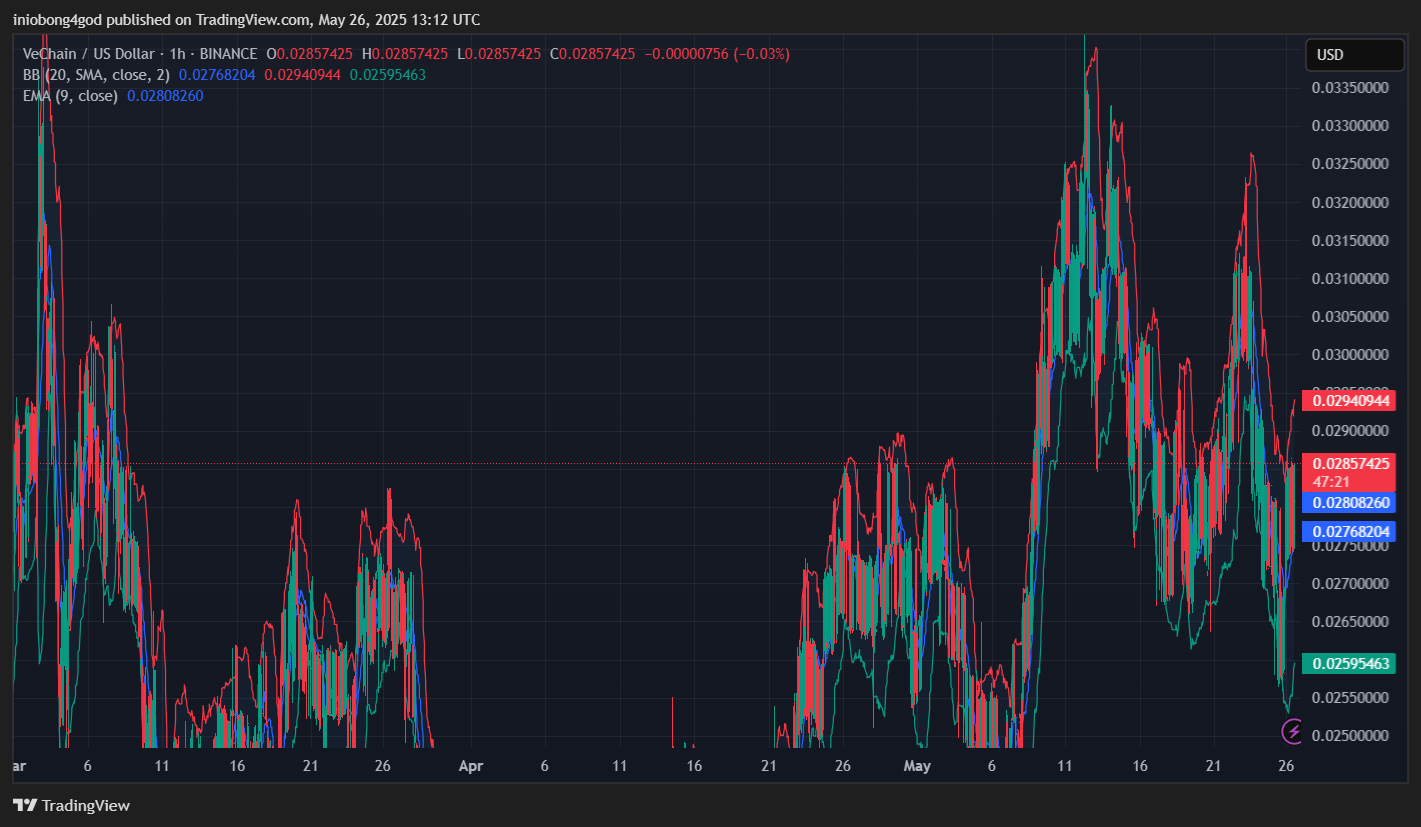 Enquanto o preço do Litecoin pisca sinais otimistas, VeChain está mostrando tendências mistas. No momento da escrita, o token VET está negociando a $0,027, tendo se recuperado na sessão mais recente. Apesar desta recuperação, seu movimento geral permanece fraco.