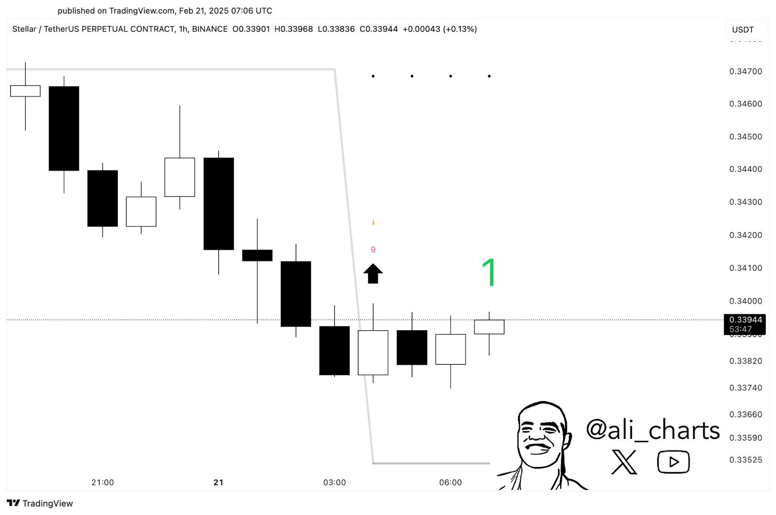 Stellar (XLM) tem negociado entre 0,31 USDT e 0,36 USDT, lutando para obter impulso para um breakout. O token permanece abaixo da Nuvem Ichimoku, sinalizando forte resistência à frente. Um impulso acima de 0,37 USDT poderia levar a um rally em direção a 0,40 USDT, enquanto falha em se manter acima de 0,32 USDT pode desencadear uma queda para 0,30 USDT.