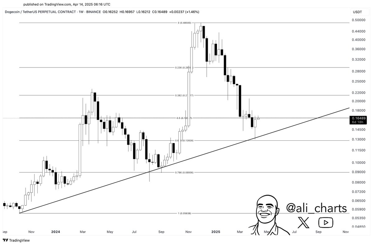 O preço do Dogecoin, atualmente negociando em torno de 0,166 USDT, mostra sinais iniciais de uma potencial quebra de resistência. Analistas identificaram um padrão de cunha descendente, frequentemente ligado a reversões de alta. Cartistas como World of Charts e Ali Charts acreditam que uma quebra pode ocorrer se DOGE garantir um fechamento acima de 0,17 USDT. Tendências históricas de 2024 mostram que estruturas similares levaram a rallies entre 100% e 300%.