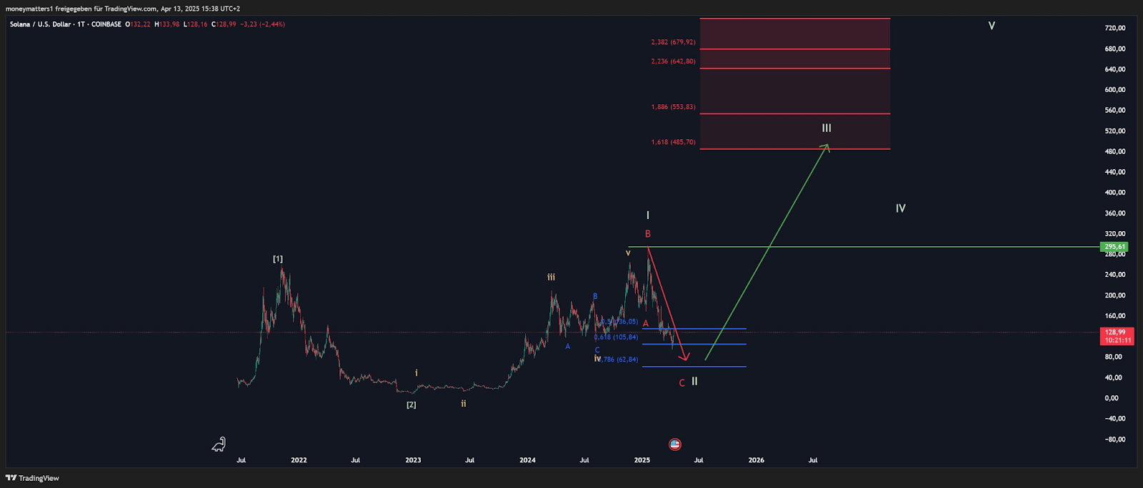 A resistência técnica agora está localizada próxima a 145 USDT, alinhada com a média móvel de 50 dias. Uma quebra clara acima deste nível poderia abrir caminho para 163 USDT. No entanto, se o nível de suporte de 125 USDT falhar, SOL poderia deslizar em direção a 103 USDT ou retestar 95,54 USDT.