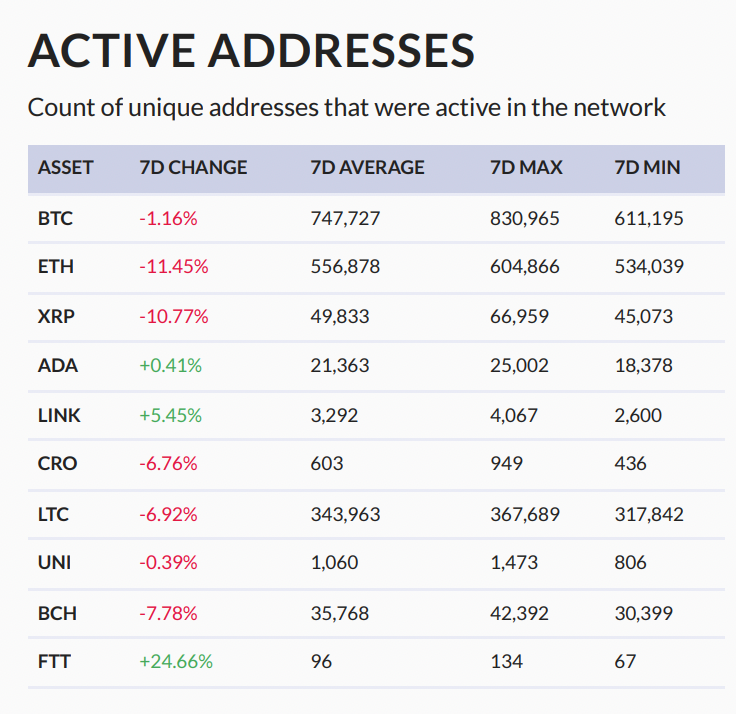 Bitcoin (BTC), Ethereum (ETH) e XRP mostraram notável atividade de endereços nos últimos sete dias. BTC liderou com uma média de 7 dias de 747.727 endereços ativos, ligeiramente em baixa em 1,16%. ETH seguiu com 556.878 endereços, caindo 11,45%. XRP teve média de 49.833, queda de 10,77%. Apesar dessas quedas, as bases de usuários permanecem fortes. Os picos de endereços ativos alcançaram 830.965 para BTC, 604.866 para ETH e 66.959 para XRP. Essas mudanças podem sinalizar comportamento de mercado em mudança, já que alguns detentores exploram ativos alternativos.